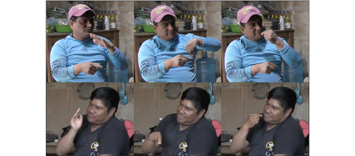 The intermediate signers, Vic and Pat, share a sibling-like relationship. Remarkably, as young children, they would sign to each other as a form of play (German 2024a). However, in 2022 and 2023, Vic left Zinacantán with his deaf uncles to go and work in the state capital. Although the uncles have since returned home, Vic has settled in the capital where with his partner and newborn child. He visits infrequently, and it remains to be seen whether his signing will undergo attrition as he continues to live apart from his deaf relatives.